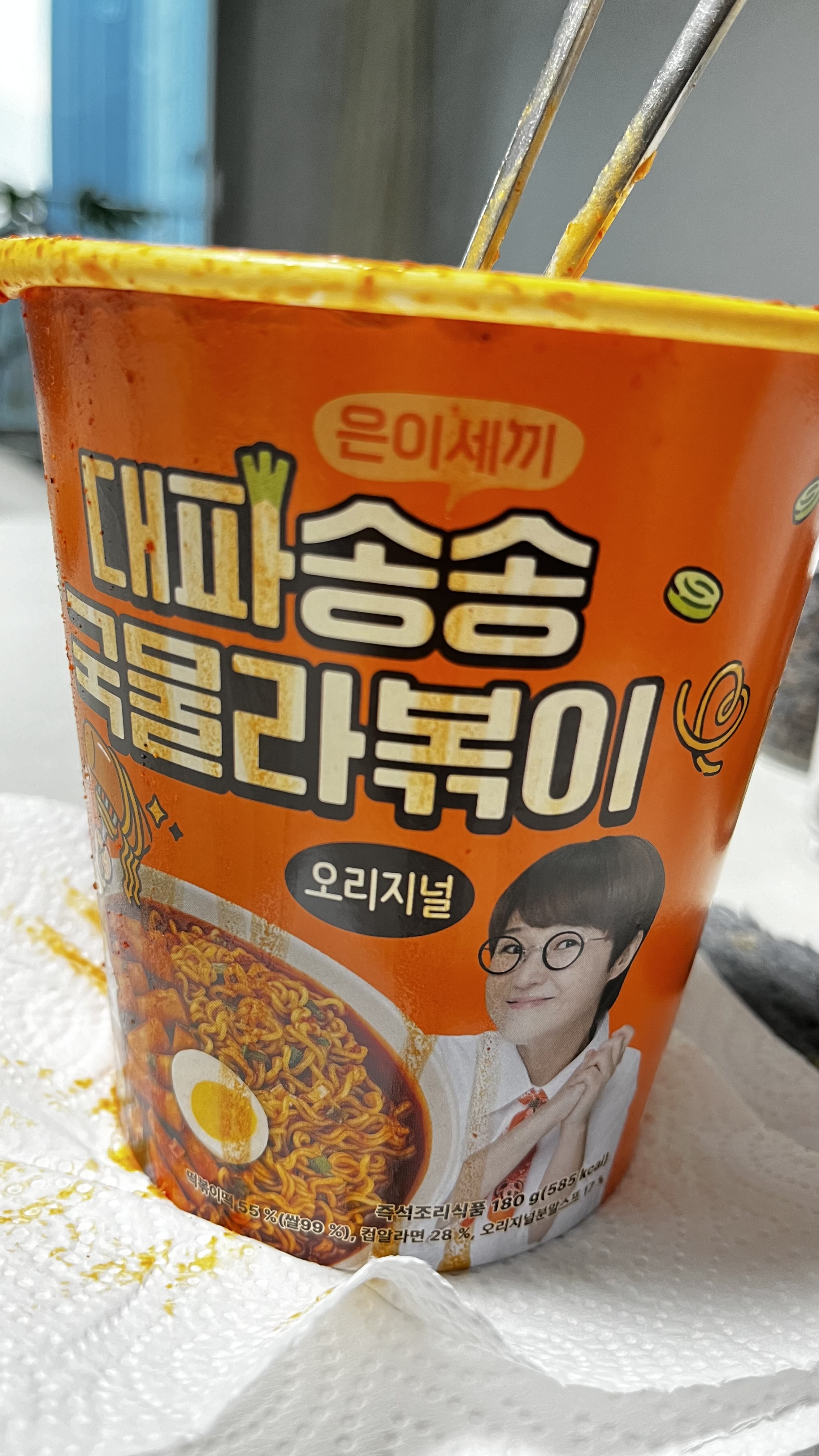 아직 짜장맛이 남아있으니, 다음 번에는 면을 빼고 표시선 보다 물을 적게 넣은 후 떡이 익도록 전자렌지에 돌린 후, 면과 물을 더 넣고 돌려서 조금 더 마음에 드는 식감을 구현해 봐야겠어요.