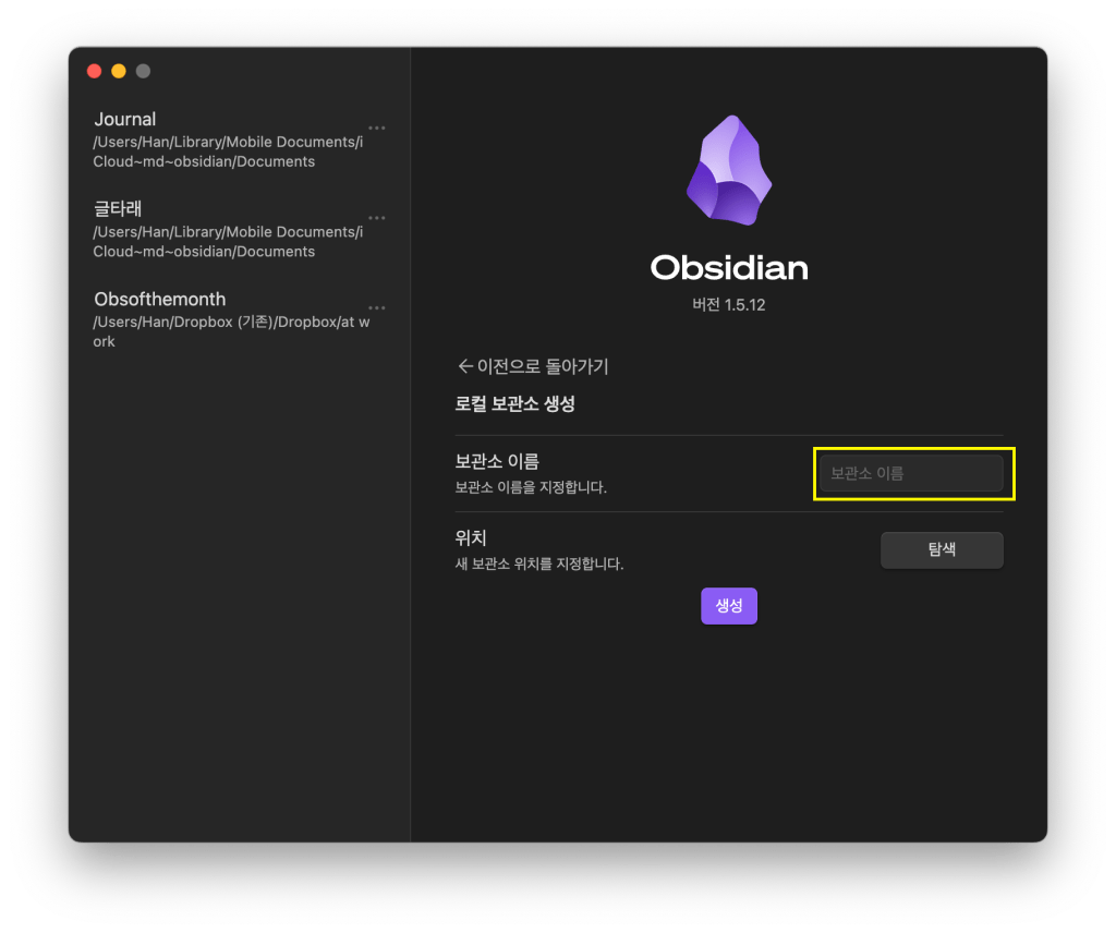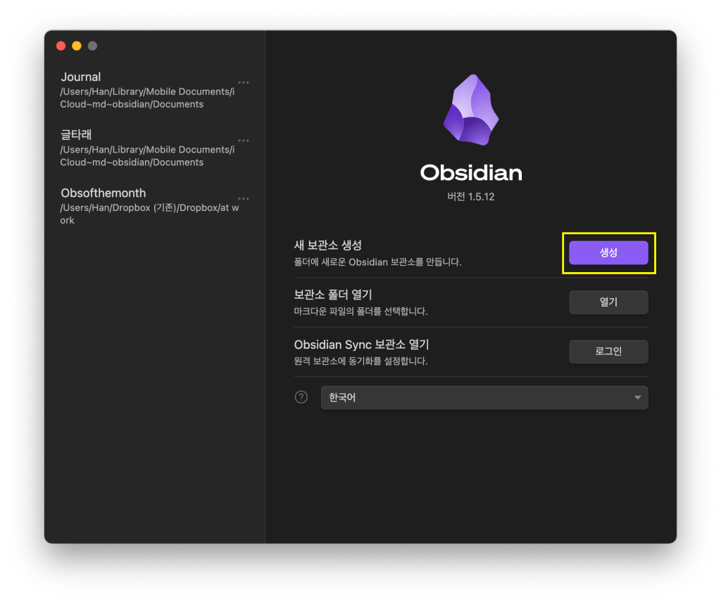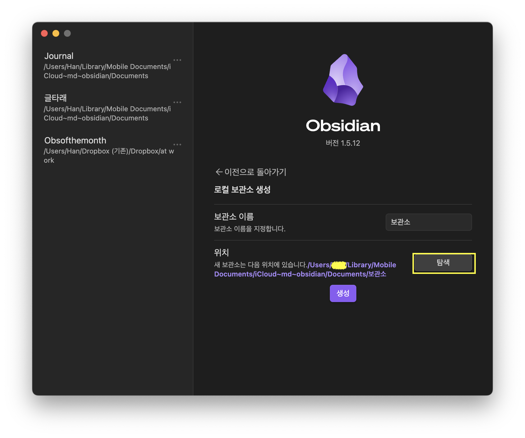 아이클라우드는 지우고, 옵시디언은 다운받고, 의 반복인 셈이네요. 이게 문제라면 옵시디언의 자체 동기화(유료)나 다른 동기화 방법을 사용하라고 권하고 있습니다.