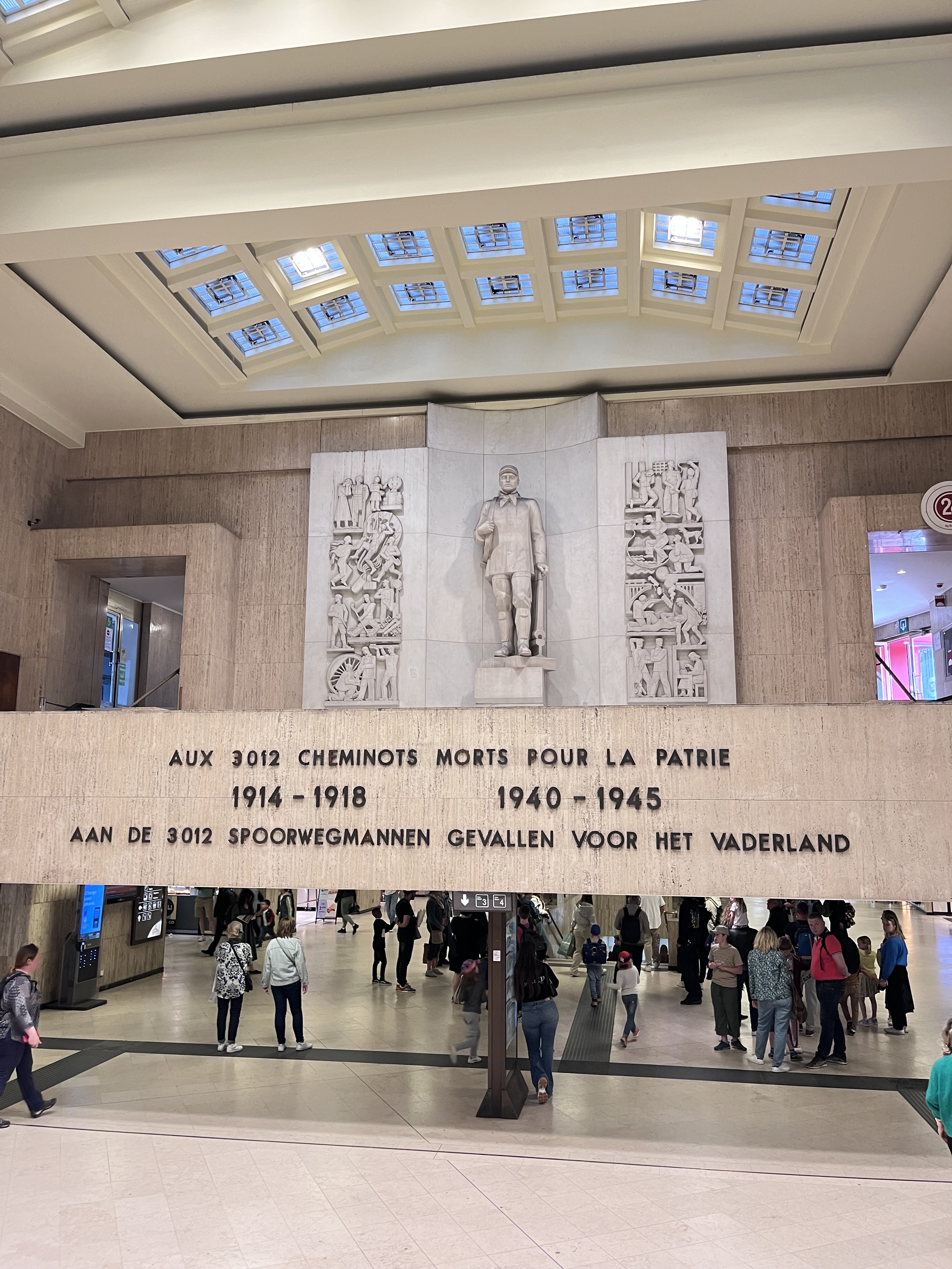 잠깐 휴양 도시의 기분만 느끼고 다음 열차를 타기 위해 역으로 돌아왔습니다. 거기서 우연히 눈에 들어온 것이 역 내부의 장식이었어요. 국가를 위해 헌신한 철도 노동자들을 기리는 추모비가 벽을 채우고 있더군요. 앤트워프역의 거대한 시계장식에 비하면 소박하지만 저는 이렇게 누군가를 기억하는 장소를 좋아합니다.