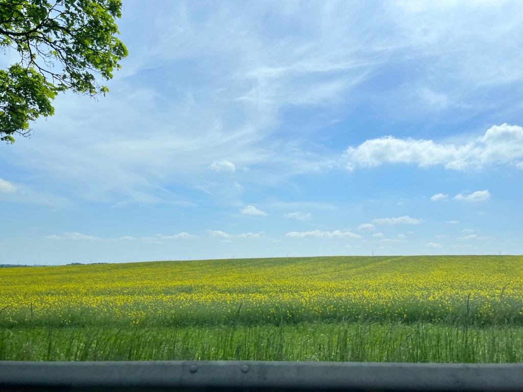 차창 밖으로 노란 유채꽃밭이 펼쳐집니다.