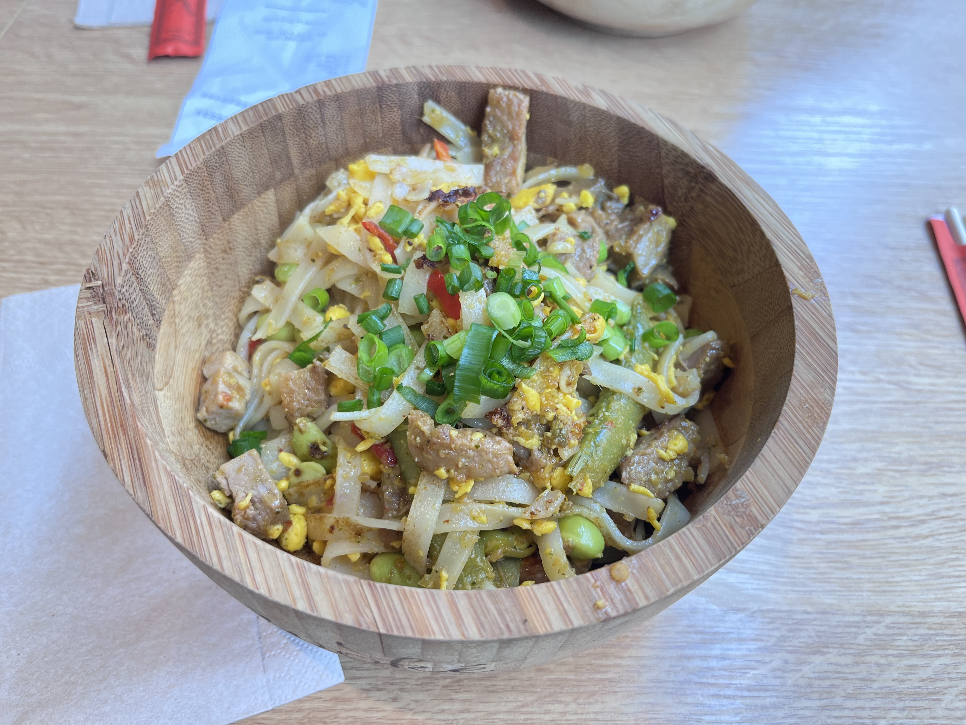 금강산도 식후경이므로, 일단 해장 겸 볶음국수를 먹어봅니다. 키오스크에서 베이스가 되는 면이나 밥, 야채, 단백질 (고기 또는 두부). 소스, 토핑을 따로 고르게 되어있습니다. 저는 넓은 쌀면과 오리고기, 베트남 스타일 소스를 골라 맛있게 한 그릇 뚝딱 했습니다.